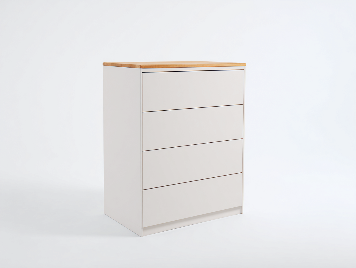 Mesita de noche con 4 cajones 45x40x80 cm blanco y natural para dormitorio - diseño moderno funcional
