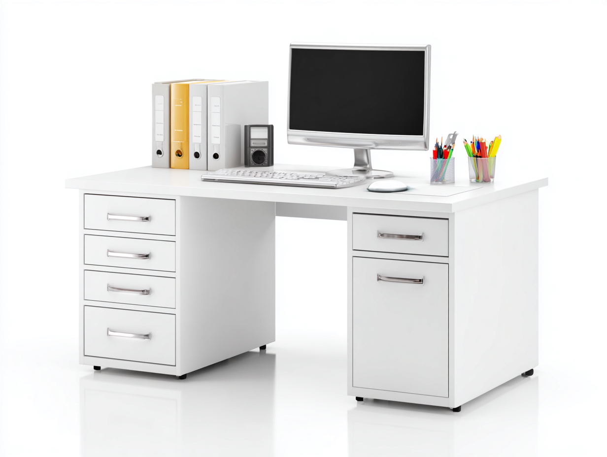 Mesa de oficina madera con cajones 130x60x75 cm - blanco - para despacho - diseño moderno