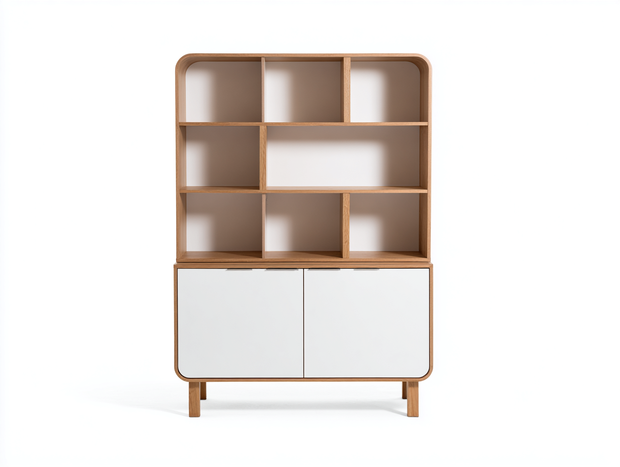 Estantería de madera 90x40x180 cm - madera natural y blanco - estantería con 6 puertas - estilo moderno