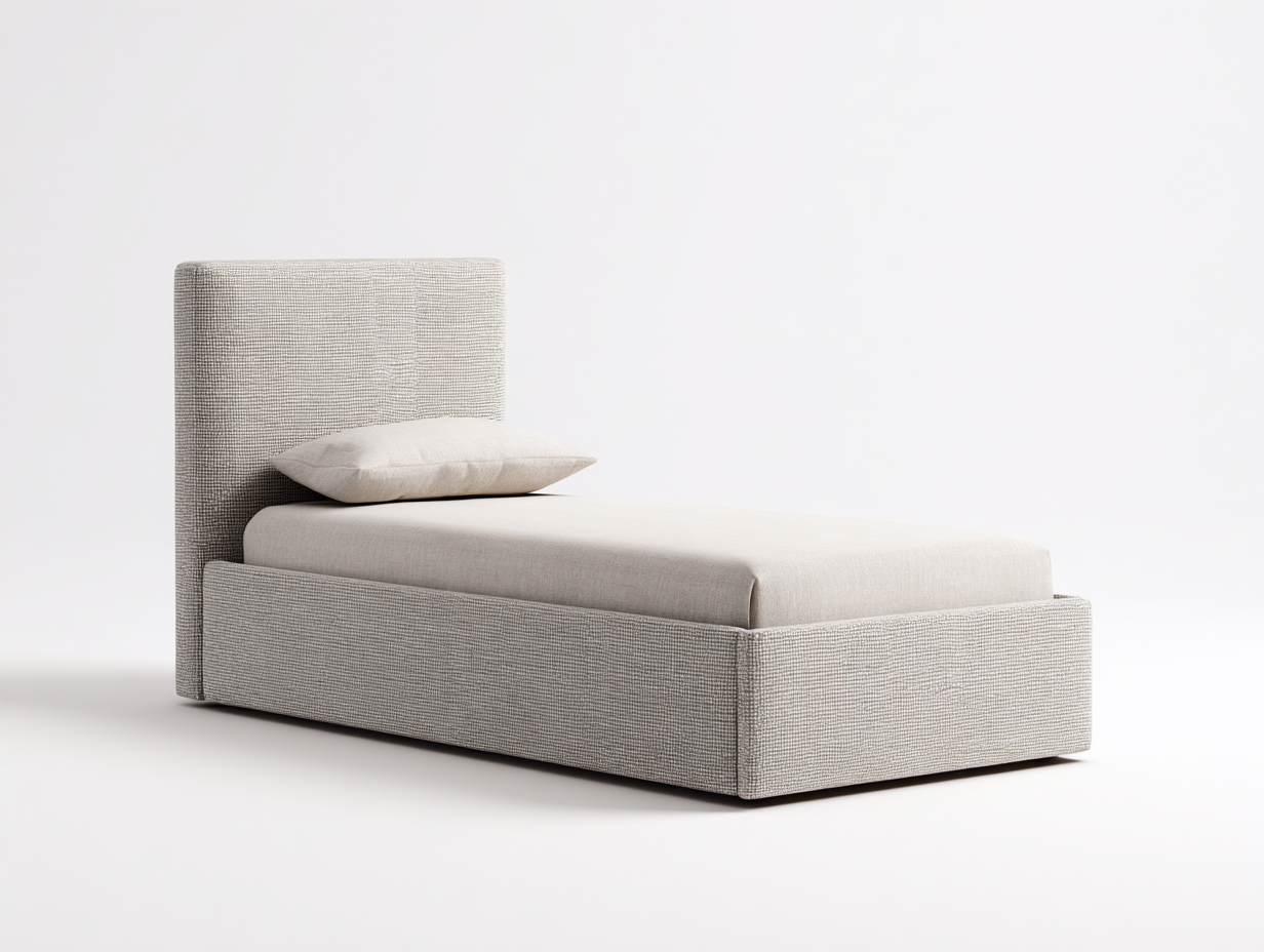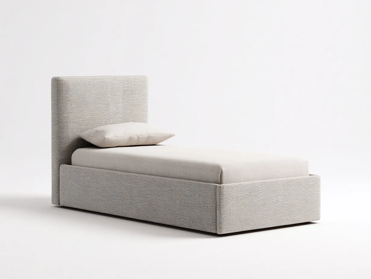 Esta cama individual presenta un diseño moderno y compacto, ideal para dormitorios que buscan funcionalidad y estilo. Su estructura baja y líneas limpias crean un ambiente ordenado y acogedor, perfecto para el descanso diario.