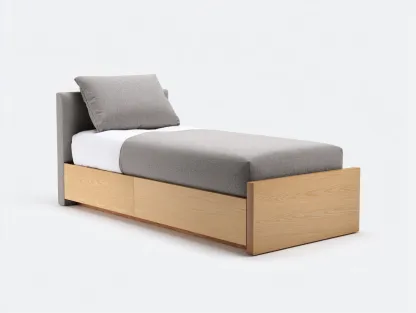 Esta cama individual está diseñada para proporcionar un espacio de descanso cómodo y funcional en dormitorios juveniles habitaciones individuales o cuartos de invitados. Su combinación de estructura en madera natural y cabecero tapizado crea un estilo equilibrado que se adapta fácilmente a interiores modernos o de inspiración natural.