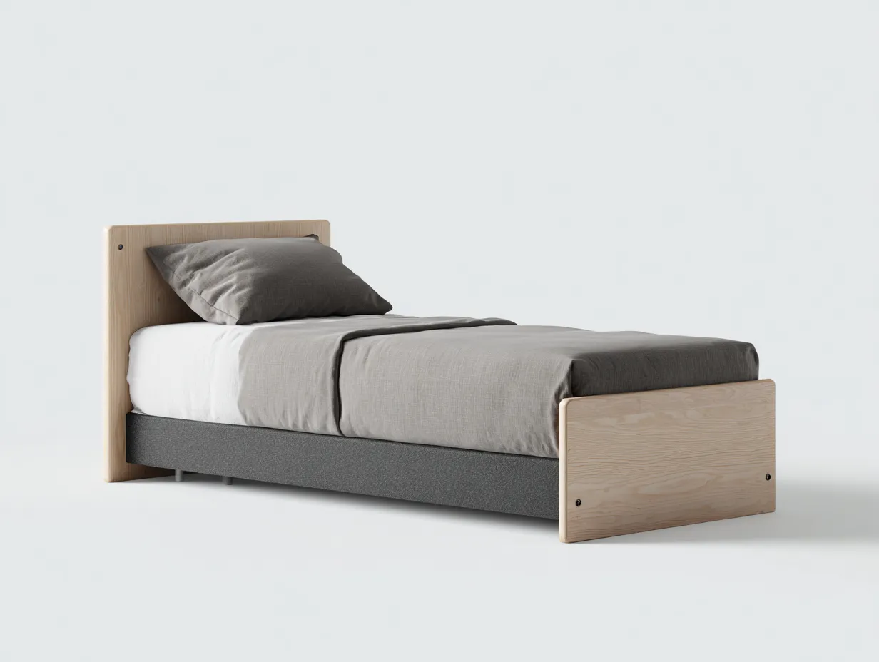 Esta cama individual está diseñada para ofrecer una solución práctica y cómoda para dormitorios modernos. Su estructura sencilla y funcional la convierte en una opción adecuada para habitaciones juveniles, dormitorios individuales o espacios de invitados. El diseño combina materiales naturales con líneas limpias que se integran fácilmente en diferentes estilos de interior.