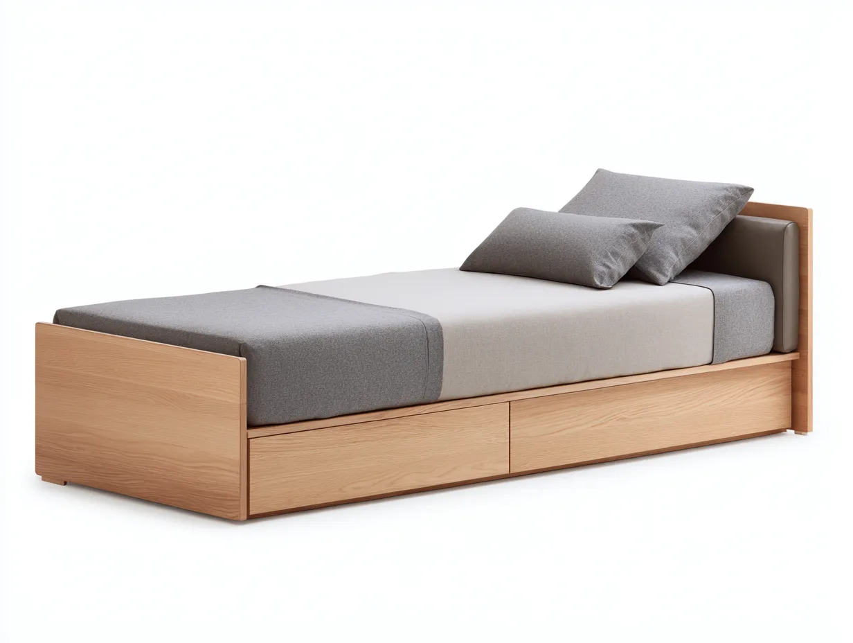 Esta cama individual de madera combina diseño funcional y estilo moderno, siendo ideal para dormitorios contemporáneos. Su estructura compacta optimiza el espacio disponible, ofreciendo una solución práctica para el descanso diario.